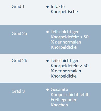 Einteilung von Knorpelschäden (Klassifikation nach Noyes)